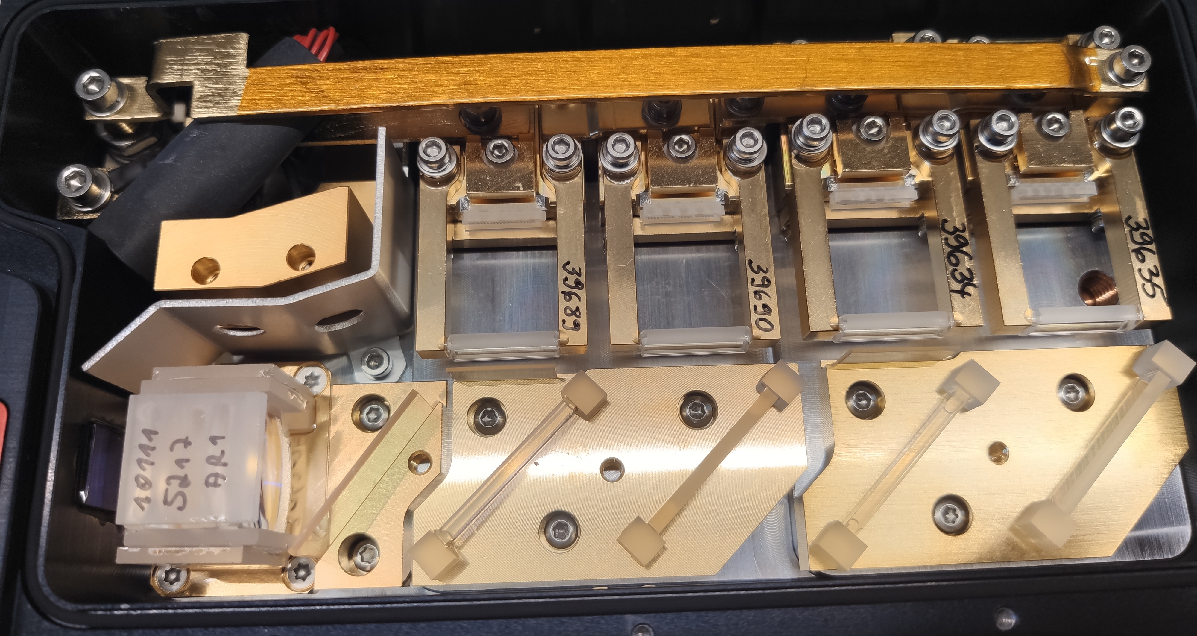 Interiormente el láser consta de 4 módulos de diodo láser de alrededor de 30 a 40W cada uno, y unidos opticamente en la salida para acoplar la fibra óptica.