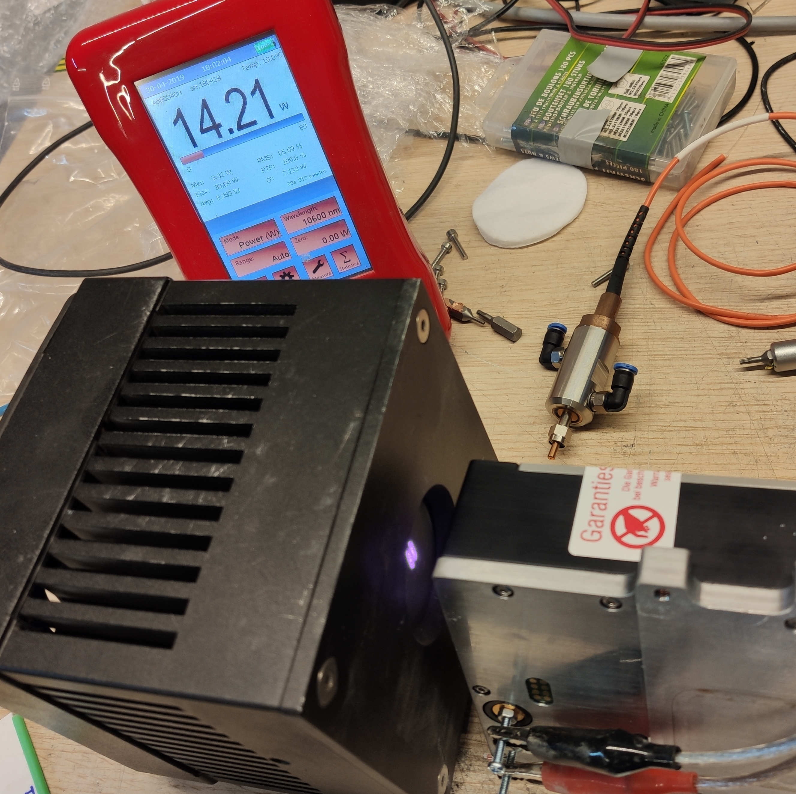 Se puede medir la potencia, y con la cámara se puede ver el patrón de láser en array y combinados, el medidor marca 14W pero a mínima potencia.